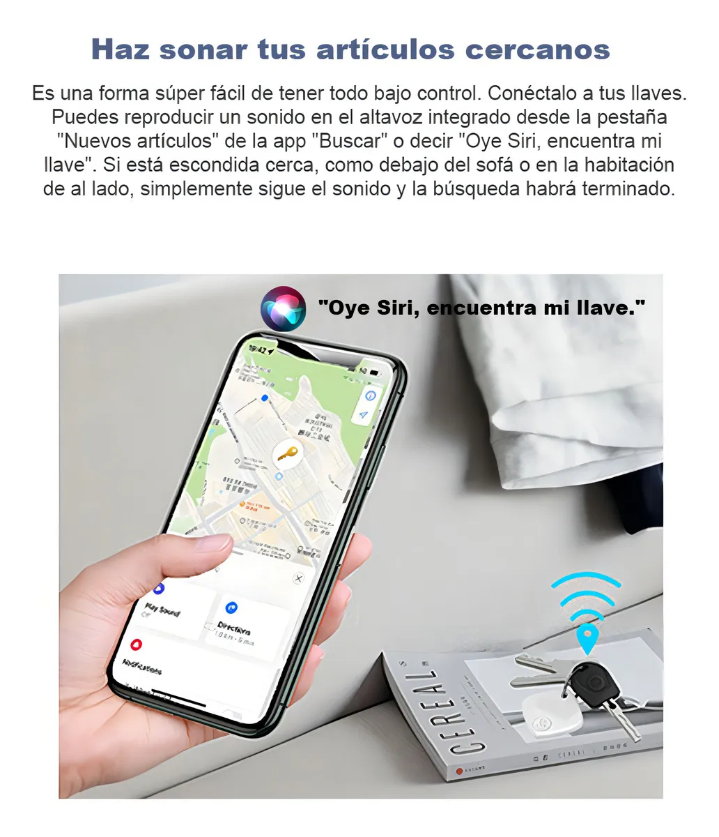 Este producto ha obtenido la certificación Apple Find My. Después de vincular directamente, puedes verificar la ubicación a través de la APLICACIÓN para rastrear los objetos perdidos. Al mismo tiempo, puedes obtener la búsqueda por voz de Siri. Cuando te alejes del artículo, el teléfono enviará automáticamente una notificación de artículo perdido.